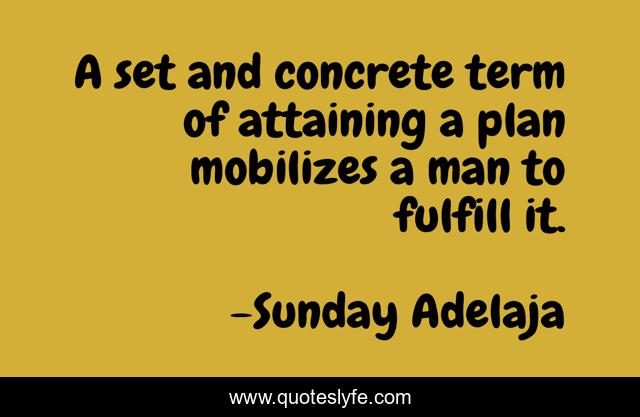 This page presents the quote "A set and concrete term of attaining a plan mobilizes a man to fulfill it.". Author of this quote is Sunday Adelaja. .