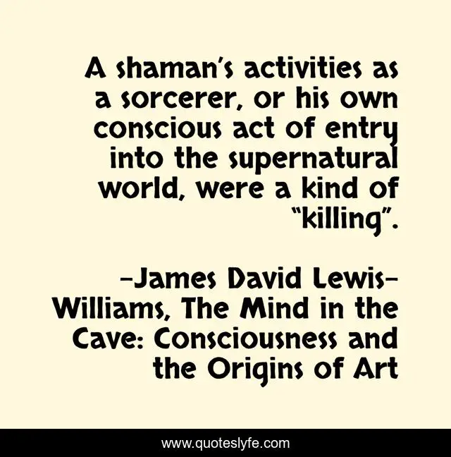 "James David Lewis-Williams, The Mind in the Cave: Consciousness and the Origins of Art Quotes." Quoteslyfe.com, 2025. Sat. 06 Dec. 2025. <https://www.quoteslyfe.com/quote/A-shaman-s-activities-as-a-sorcerer-155621>.