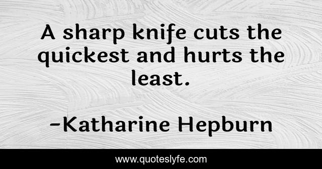 This page presents the quote "A sharp knife cuts the quickest and hurts the least.". Author of this quote is Katharine Hepburn. .