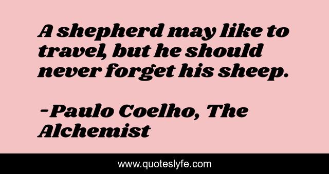 This page presents the quote "A shepherd may like to travel, but he should never forget his sheep.". Author of this quote is Paulo Coelho, The Alchemist. This quote is about obligations, dreaming,.