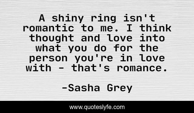 This page presents the quote "A shiny ring isn't romantic to me. I think thought and love into what you do for the person you're in love with - that's romance.". Author of this quote is Sasha Grey. This quote is about thought, me, love, affection,.
