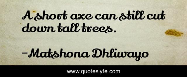 "Matshona Dhliwayo Quotes." Quoteslyfe.com, 2025. Fri. 05 Dec. 2025. <https://www.quoteslyfe.com/quote/A-short-axe-can-still-cut-down-83107>.