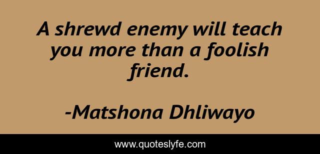 "Matshona Dhliwayo Quotes." Quoteslyfe.com, 2025. Fri. 05 Dec. 2025. <https://www.quoteslyfe.com/quote/A-shrewd-enemy-will-teach-you-more-57868>.