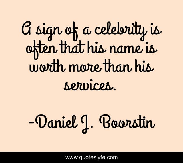 This page presents the quote "A sign of a celebrity is often that his name is worth more than his services.". Author of this quote is Daniel J. Boorstin. This quote is about celebrities, fame,.