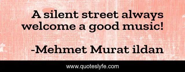 This page presents the quote "A silent street always welcome a good music!". Author of this quote is Mehmet Murat ildan. This quote is about music, street, good-music, silent, ildan-wise-sayings,.