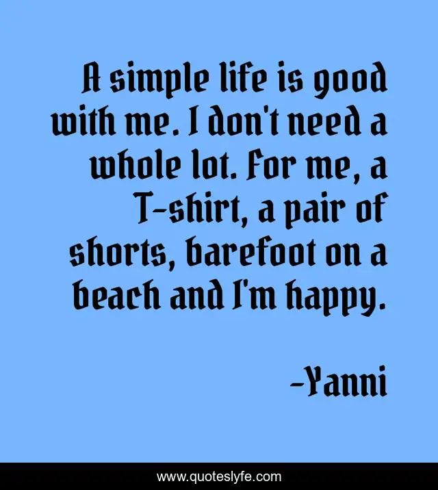 "Yanni Quotes." Quoteslyfe.com, 2025. Sat. 06 Dec. 2025. <https://www.quoteslyfe.com/quote/A-simple-life-is-good-with-me-303321>.