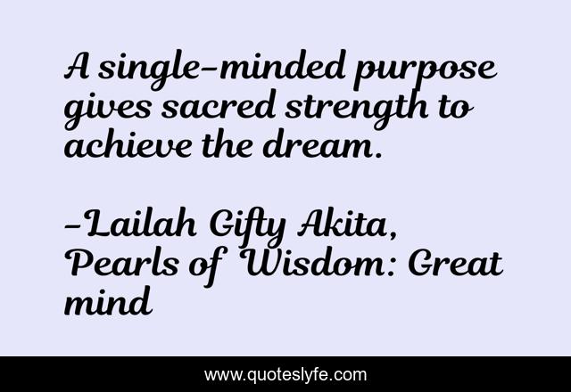 "Lailah Gifty Akita, Pearls of Wisdom: Great mind Quotes." Quoteslyfe.com, 2025. Mon. 08 Dec. 2025. <https://www.quoteslyfe.com/quote/A-single-minded-purpose-gives-sacred-strength-34462>.