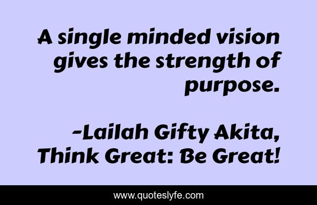 "Lailah Gifty Akita, Think Great: Be Great! Quotes." Quoteslyfe.com, 2025. Mon. 08 Dec. 2025. <https://www.quoteslyfe.com/quote/A-single-minded-vision-gives-the-strength-34556>.