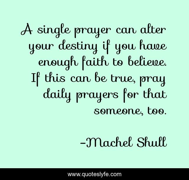 This page presents the quote "A single prayer can alter your destiny if you have enough faith to believe. If this can be true, pray daily prayers for that someone, too.". Author of this quote is Machel Shull. This quote is about faith, praying, hope, prayer,.