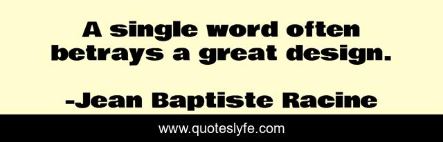 This page presents the quote "A single word often betrays a great design.". Author of this quote is Jean Baptiste Racine. This quote is about words, language,.
