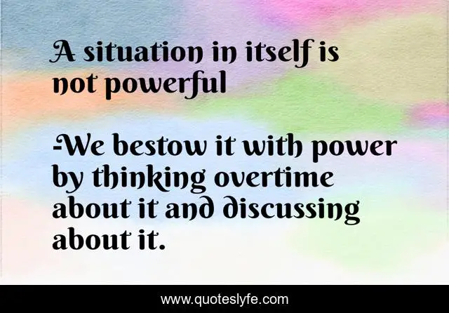 "We bestow it with power by thinking overtime about it and discussing about it. Quotes." Quoteslyfe.com, 2025. Sat. 06 Dec. 2025. <https://www.quoteslyfe.com/quote/A-situation-in-itself-is-not-powerful-148010>.
