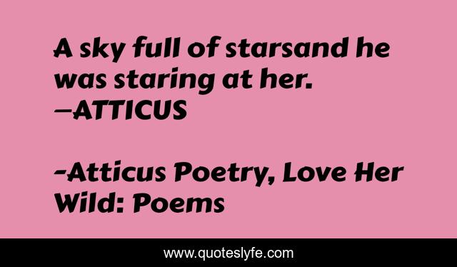 This page presents the quote "A sky full of starsand he was staring at her. —ATTICUS". Author of this quote is Atticus Poetry, Love Her Wild: Poems. This quote is about atticus, love, instagram, her, atticuspoetry, poetry, quotes, wild, poems,.