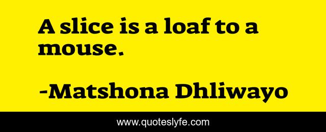 "Matshona Dhliwayo Quotes." Quoteslyfe.com, 2025. Sat. 06 Dec. 2025. <https://www.quoteslyfe.com/quote/A-slice-is-a-loaf-to-a-207571>.