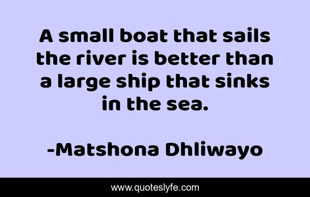 "Matshona Dhliwayo Quotes." Quoteslyfe.com, 2025. Fri. 05 Dec. 2025. <https://www.quoteslyfe.com/quote/A-small-boat-that-sails-the-river-98146>.