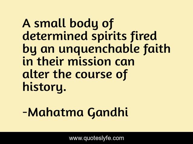 This page presents the quote "A small body of determined spirits fired by an unquenchable faith in their mission can alter the course of history.". Author of this quote is Mahatma Gandhi. This quote is about small, faith, body,.