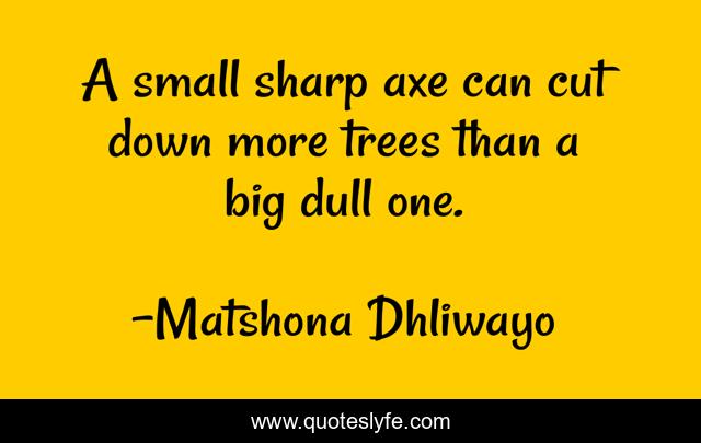 "Matshona Dhliwayo Quotes." Quoteslyfe.com, 2025. Fri. 05 Dec. 2025. <https://www.quoteslyfe.com/quote/A-small-sharp-axe-can-cut-down-58165>.