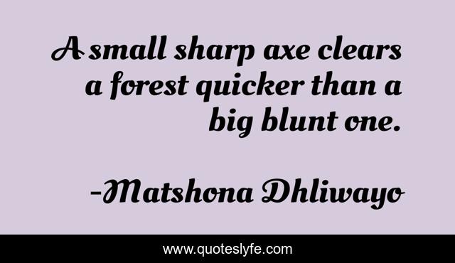 "Matshona Dhliwayo Quotes." Quoteslyfe.com, 2025. Fri. 05 Dec. 2025. <https://www.quoteslyfe.com/quote/A-small-sharp-axe-clears-a-forest-58007>.