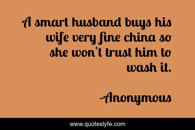 This page presents the quote "A smart husband buys his wife very fine china so she won't trust him to wash it.". Author of this quote is Anonymous. This quote is about love, marriage, affection,.
