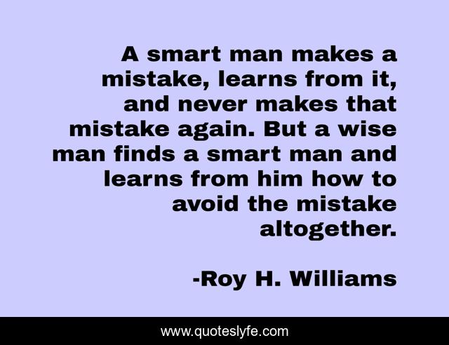 This page presents the quote "A smart man makes a mistake, learns from it, and never makes that mistake again. But a wise man finds a smart man and learns from him how to avoid the mistake altogether.". Author of this quote is Roy H. Williams. This quote is about wise, smart, man,.