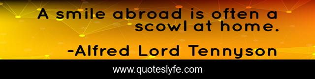 This page presents the quote "A smile abroad is often a scowl at home.". Author of this quote is Alfred Lord Tennyson. This quote is about home, often, abroad,.