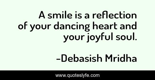 This page presents the quote "A smile is a reflection of your dancing heart and your joyful soul.". Author of this quote is Debasish Mridha. This quote is about miraboli, inspirational, oscar-wilde, philosophy, debasish-mridha, tagore, quotes, dancing-heart, buddha,.