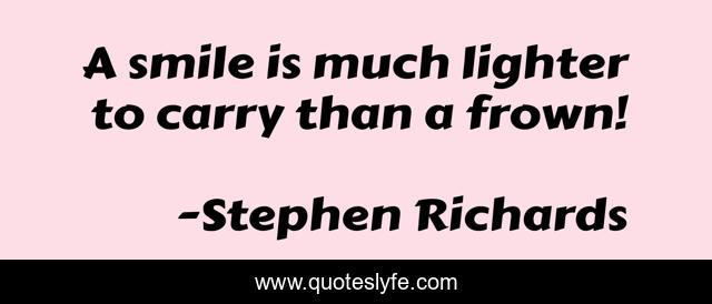 "Stephen Richards Quotes." Quoteslyfe.com, 2025. Mon. 08 Dec. 2025. <https://www.quoteslyfe.com/quote/A-smile-is-much-lighter-to-carry-78331>.