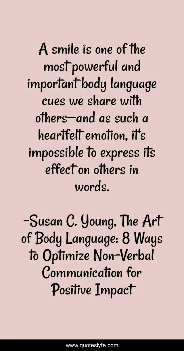 "Susan C. Young, The Art of Body Language: 8 Ways to Optimize Non-Verbal Communication for Positive Impact Quotes." Quoteslyfe.com, 2025. Fri. 05 Dec. 2025. <https://www.quoteslyfe.com/quote/A-smile-is-one-of-the-most-233513>.
