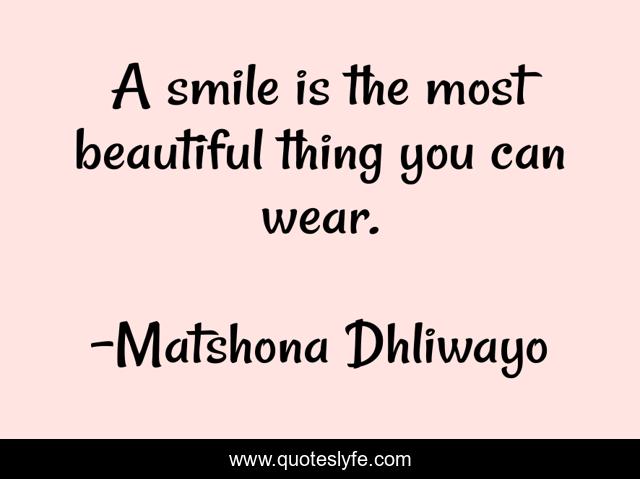 "Matshona Dhliwayo Quotes." Quoteslyfe.com, 2025. Fri. 05 Dec. 2025. <https://www.quoteslyfe.com/quote/A-smile-is-the-most-beautiful-thing-188342>.
