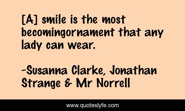 "Susanna Clarke, Jonathan Strange & Mr Norrell Quotes." Quoteslyfe.com, 2025. Sun. 07 Dec. 2025. <https://www.quoteslyfe.com/quote/A-smile-is-the-most-becomingornament-that-165416>.