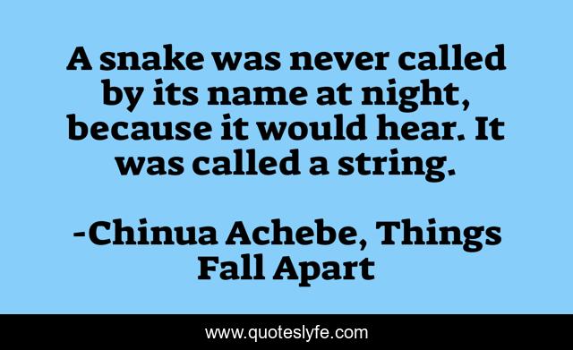 "Chinua Achebe, Things Fall Apart Quotes." Quoteslyfe.com, 2025. Sun. 07 Dec. 2025. <https://www.quoteslyfe.com/quote/A-snake-was-never-called-by-its-150095>.