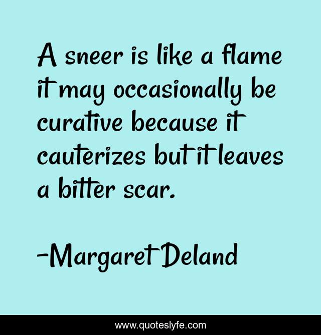 This page presents the quote "A sneer is like a flame it may occasionally be curative because it cauterizes but it leaves a bitter scar.". Author of this quote is Margaret Deland. This quote is about positive, confidence,.