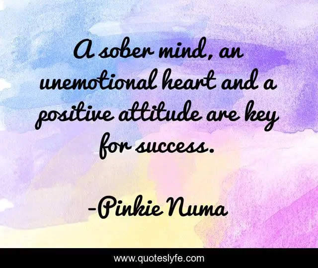 This page presents the quote "A sober mind, an unemotional heart and a positive attitude are key for success.". Author of this quote is Pinkie Numa. This quote is about heart, mindset, emotions, success, positive-attitude,.