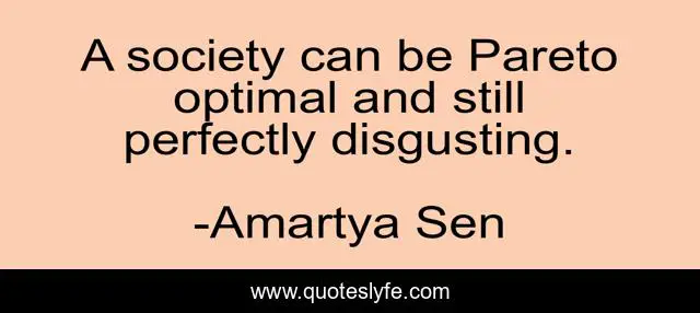 This page presents the quote "A society can be Pareto optimal and still perfectly disgusting.". Author of this quote is Amartya Sen. This quote is about justice, society, economics,.