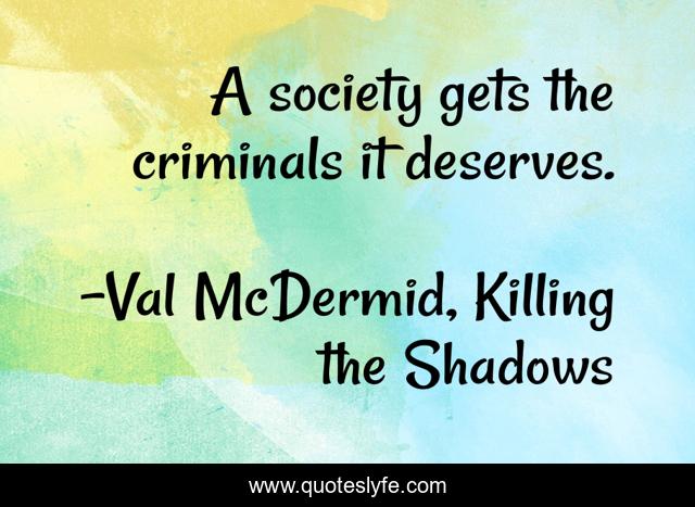 "Val McDermid, Killing the Shadows Quotes." Quoteslyfe.com, 2025. Sat. 06 Dec. 2025. <https://www.quoteslyfe.com/quote/A-society-gets-the-criminals-it-deserves-193335>.