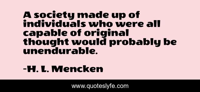 This page presents the quote "A society made up of individuals who were all capable of original thought would probably be unendurable.". Author of this quote is H. L. Mencken. This quote is about thought, up, capable,.
