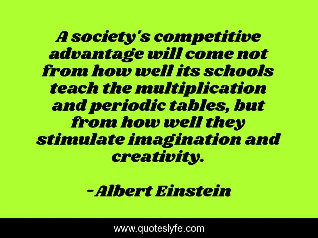 This page presents the quote "A society's competitive advantage will come not from how well its schools teach the multiplication and periodic tables, but from how well they stimulate imagination and creativity.". Author of this quote is Albert Einstein. .