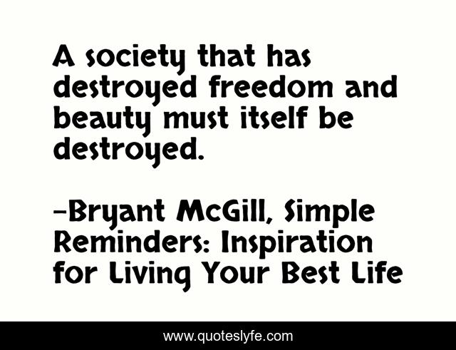 "Bryant McGill, Simple Reminders: Inspiration for Living Your Best Life Quotes." Quoteslyfe.com, 2025. Mon. 08 Dec. 2025. <https://www.quoteslyfe.com/quote/A-society-that-has-destroyed-freedom-and-102870>.