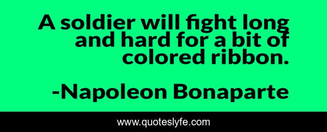 This page presents the quote "A soldier will fight long and hard for a bit of colored ribbon.". Author of this quote is Napoleon Bonaparte. This quote is about soldier, long, fight,.