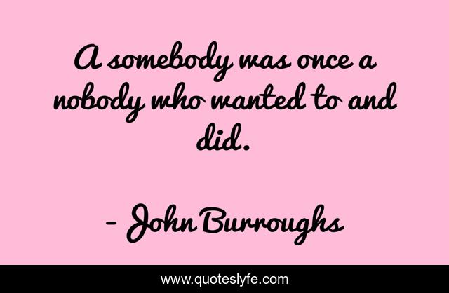 This page presents the quote "A somebody was once a nobody who wanted to and did.". Author of this quote is John Burroughs. This quote is about nobody, somebody, once,.