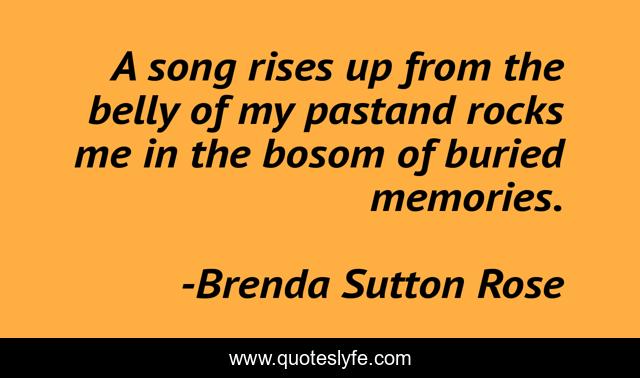 This page presents the quote "A song rises up from the belly of my pastand rocks me in the bosom of buried memories.". Author of this quote is Brenda Sutton Rose. This quote is about memories, southern-literature, music, poetry,.
