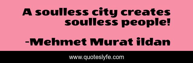 This page presents the quote "A soulless city creates soulless people!". Author of this quote is Mehmet Murat ildan. This quote is about city, soulless, ildan-words, mehmet-murat-ildan, ildan-wise-sayings, people, ildan-wisdom, turkish, turkish-playwrights,.