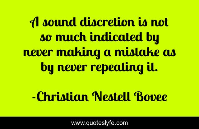 This page presents the quote "A sound discretion is not so much indicated by never making a mistake as by never repeating it.". Author of this quote is Christian Nestell Bovee. .