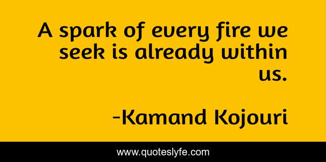 "Kamand Kojouri Quotes." Quoteslyfe.com, 2025. Fri. 05 Dec. 2025. <https://www.quoteslyfe.com/quote/A-spark-of-every-fire-we-seek-92435>.
