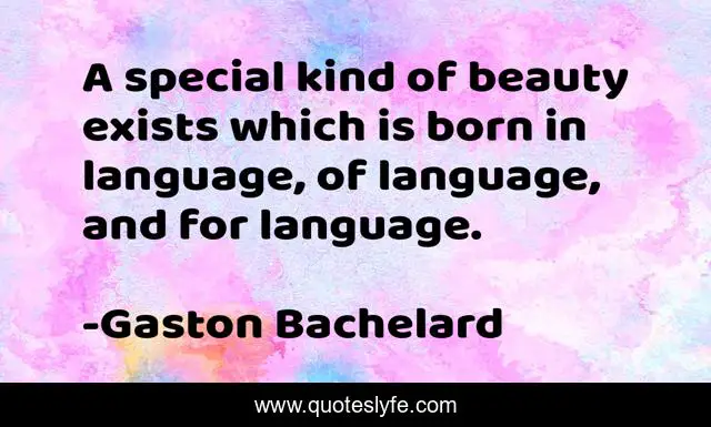 This page presents the quote "A special kind of beauty exists which is born in language, of language, and for language.". Author of this quote is Gaston Bachelard. This quote is about born, language, special,.