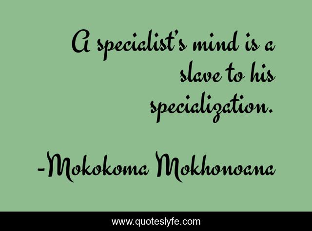 "Mokokoma Mokhonoana Quotes." Quoteslyfe.com, 2025. Mon. 08 Dec. 2025. <https://www.quoteslyfe.com/quote/A-specialist-s-mind-is-a-slave-87953>.