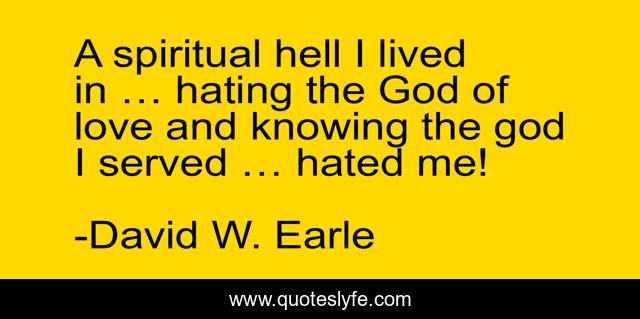 This page presents the quote "A spiritual hell I lived in … hating the God of love and knowing the god I served … hated me!". Author of this quote is David W. Earle. This quote is about addiction, pain, recovery, change,.