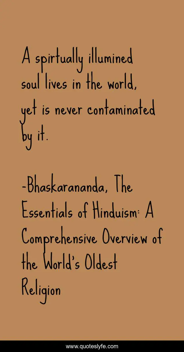 "Bhaskarananda, The Essentials of Hinduism: A Comprehensive Overview of the World's Oldest Religion Quotes." Quoteslyfe.com, 2025. Tue. 09 Dec. 2025. <https://www.quoteslyfe.com/quote/A-spirtually-illumined-soul-lives-in-the-29987>.