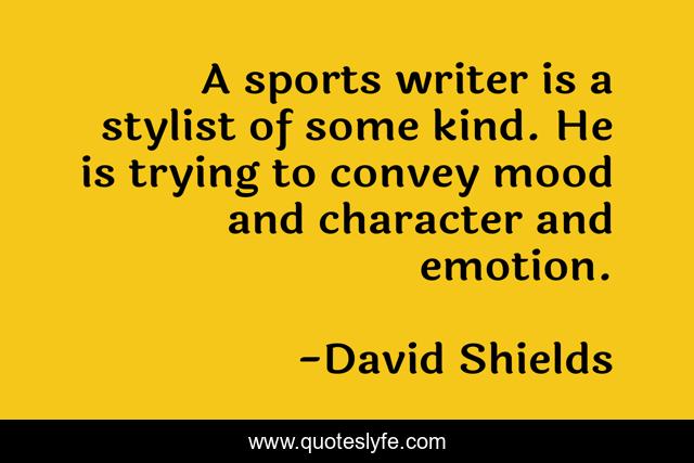 This page presents the quote "A sports writer is a stylist of some kind. He is trying to convey mood and character and emotion.". Author of this quote is David Shields. This quote is about emotion, trying, character,.