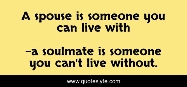 "a soulmate is someone you can't live without. Quotes." Quoteslyfe.com, 2025. Mon. 08 Dec. 2025. <https://www.quoteslyfe.com/quote/A-spouse-is-someone-you-can-live-49838>.
