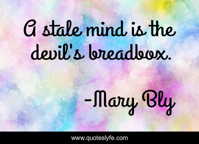 This page presents the quote "A stale mind is the devil's breadbox.". Author of this quote is Mary Bly. This quote is about day, one,.
